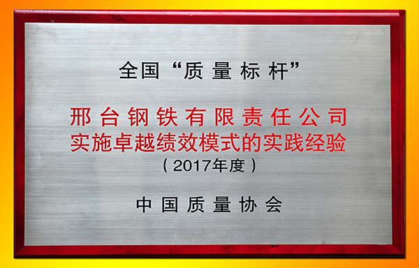 2017年9月,從國家工信部、中國質量協(xié)會傳來喜訊,邢鋼申報的“實施卓越績效模式的實踐經(jīng)驗”被評為2017年度“質量標桿”,并作為典型經(jīng)驗予以推廣。