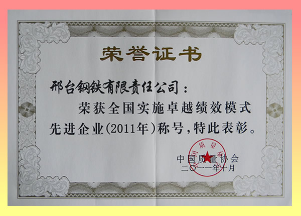 邢鋼榮獲“全國質(zhì)量獎鼓勵獎”