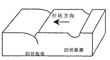 通過對不同連鑄條件下鑄坯表面撮痘進行金相分析,最常見的振痕形態(tài)基本上可分為兩種:凹陷狀振痕和鉤狀振痕,其典型的形貌如下圖所示。