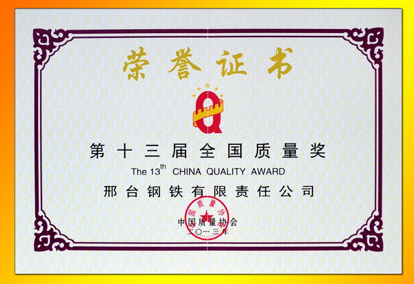 邢鋼喜獲“全國質(zhì)量獎”