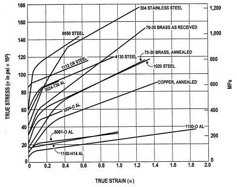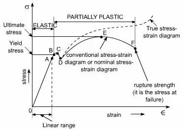 對于可以發(fā)生拉伸塑性變形的材料,最常用的有兩類曲線:工程應力-工程應變曲線和真應力-真應變曲線。它們的區(qū)別在于計算應力時采用的面積不同,前者用樣品的初始面積,后者用拉伸過程中的實時橫截面積。因此,在應力-應變曲線上,真應力一般比工程應力高。
