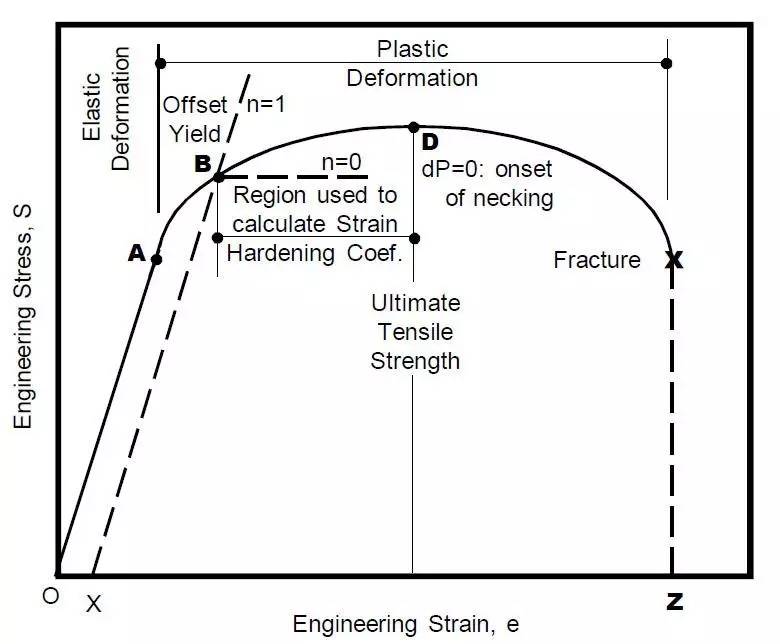 拉伸試驗是最采用的力學性能測試試驗,通過拉伸曲線我們可以獲得一系列的材料力學性能參數(shù)。那么從拉伸曲線上我們參提取出來哪些有用的信息呢?