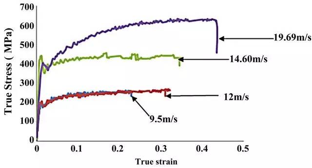 最后,談一下應變速率。通常測試的金屬材料的拉伸曲線都是在較低的應變速率下測得。只有一些特殊金屬構(gòu)件才需要在較高應變速率下測試其力學性能,即發(fā)生高速形變的構(gòu)件。正常室溫條件下應變速率拉伸,材料的變形主要以位錯的滑移或?qū)\生為主。
