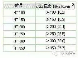 表2為灰鑄鐵的新的國家標(biāo)準(zhǔn)。該標(biāo)準(zhǔn)是以灰鑄鐵的抗拉強(qiáng)度作為分級依據(jù)的。由于灰鑄鐵對冷卻速率的敏感性(壁厚效應(yīng)),同一種牌號鑄鐵在不同鑄件壁厚條件下的實(shí)際強(qiáng)度有很大的差別(薄壁與厚壁之間在強(qiáng)度上的差別達(dá)50-80MPa)。