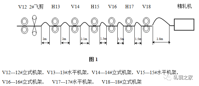 為了保證高速、穩(wěn)定地生產(chǎn),設(shè)計(jì)者在軋線(xiàn)共設(shè)置了七個(gè)活套裝置:兩個(gè)水平活套(在14#--15#機(jī)架間,18#--19#機(jī)架間)和五個(gè)立活套。布置情況及活套跨距如(圖1)所示。至于活套掃描器與活套臺(tái)的距離A,要根據(jù)活套的套量偏差H以及活套檢測(cè)角度α進(jìn)行初始調(diào)整及校準(zhǔn)。注意活套掃描器安裝位置不同,會(huì)影響到測(cè)得的實(shí)際值。其一般計(jì)算公式為A=H/(2×tgα/2)。在軋制某些規(guī)格時(shí),有些活套可以不選用,那么此活套的控制不起作用,即起套輥不動(dòng)作。