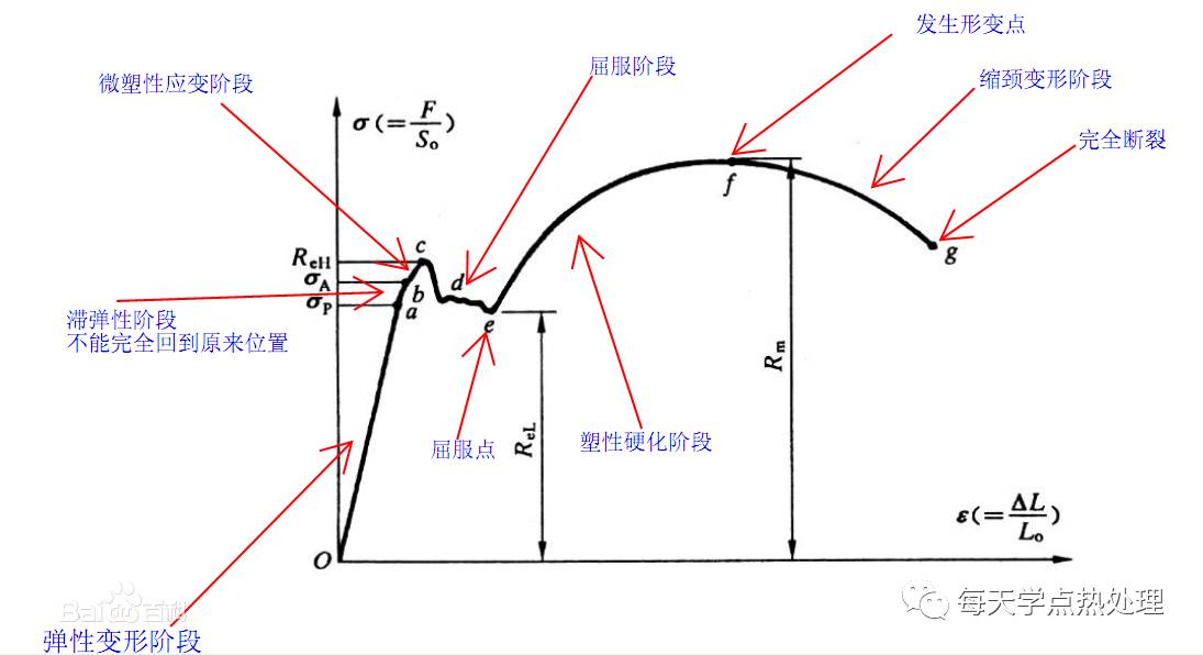 當應(yīng)力超過彈性極限后,進入屈服階段后,變形增加較快,此時除了產(chǎn)生彈性變形外,還產(chǎn)生部分塑性變形。當應(yīng)力達到b點后,塑性應(yīng)變急劇增加,應(yīng)力應(yīng)變出現(xiàn)微小波動,這種現(xiàn)象稱為屈服。這一階段的最大、最小應(yīng)力分別稱為上屈服點和下屈服點。由于下屈服點的數(shù)值較為穩(wěn)定,因此以它作為材料抗力的指標,稱為屈服點或屈服強度(ReL或Rp0.2)。