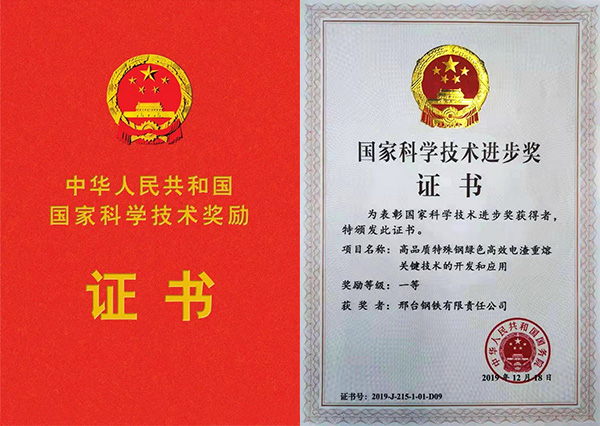 邢鋼高品質(zhì)特殊鋼綠色高效電渣重熔關(guān)鍵技術(shù)的開發(fā)與應(yīng)用榮膺國家科技進(jìn)步一等獎(jiǎng)