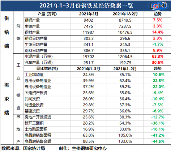 蘭格追蹤:2021年1-3月鋼鐵及經濟數(shù)據一覽