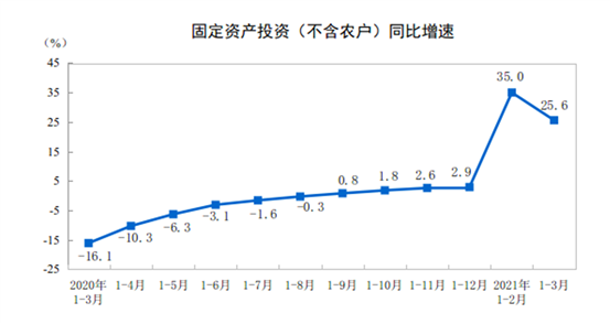 2021年1-3月全國固定資產投資增長25.6%