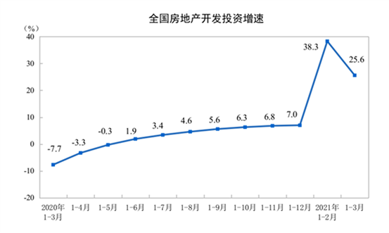 2021年1-3月全國房地產開發(fā)投資同比增長25.6%