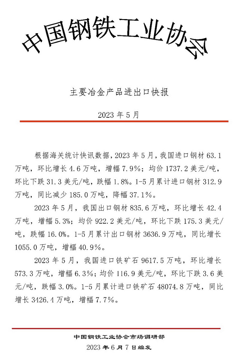 來源:中國鋼鐵工業(yè)協(xié)會(huì) 發(fā)布時(shí)間:2023年06月09日 點(diǎn)擊數(shù):