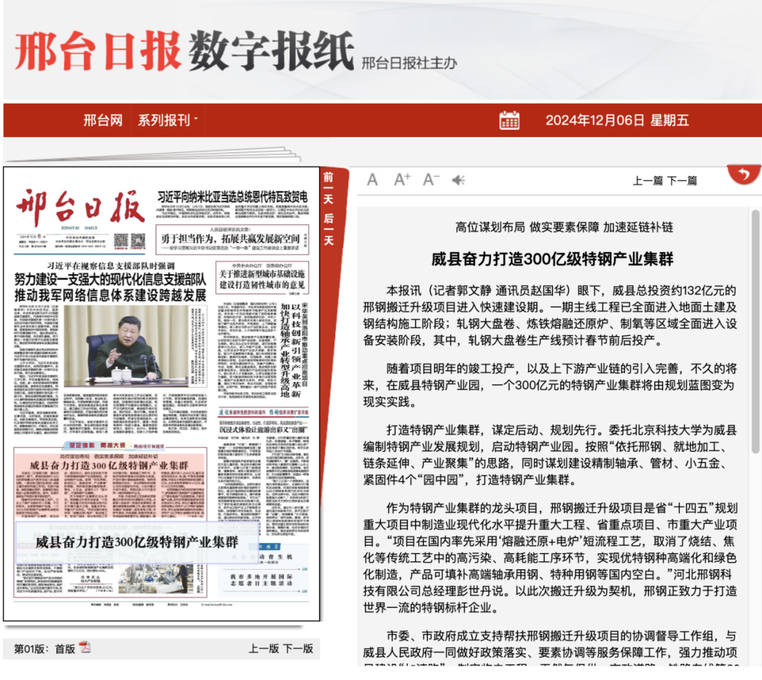 相關:威縣奮力打造300億級特鋼產業(yè)集群