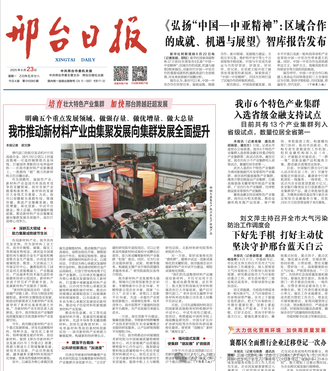 【邢臺日報】我市推動新材料產(chǎn)業(yè)由集聚發(fā)展向集群發(fā)展全面提升